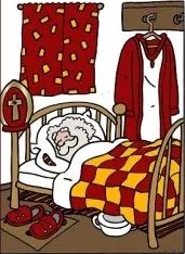 bevestigde alles aan elkaar en kleedde de Sint verder aan. Daarna werd hij zorgvuldig op ons bed neer gevleid. Gordijnen gesloten en de deur zachtjes dicht. Met een dreun slaat de voordeur dicht. "Ik ben thuis"